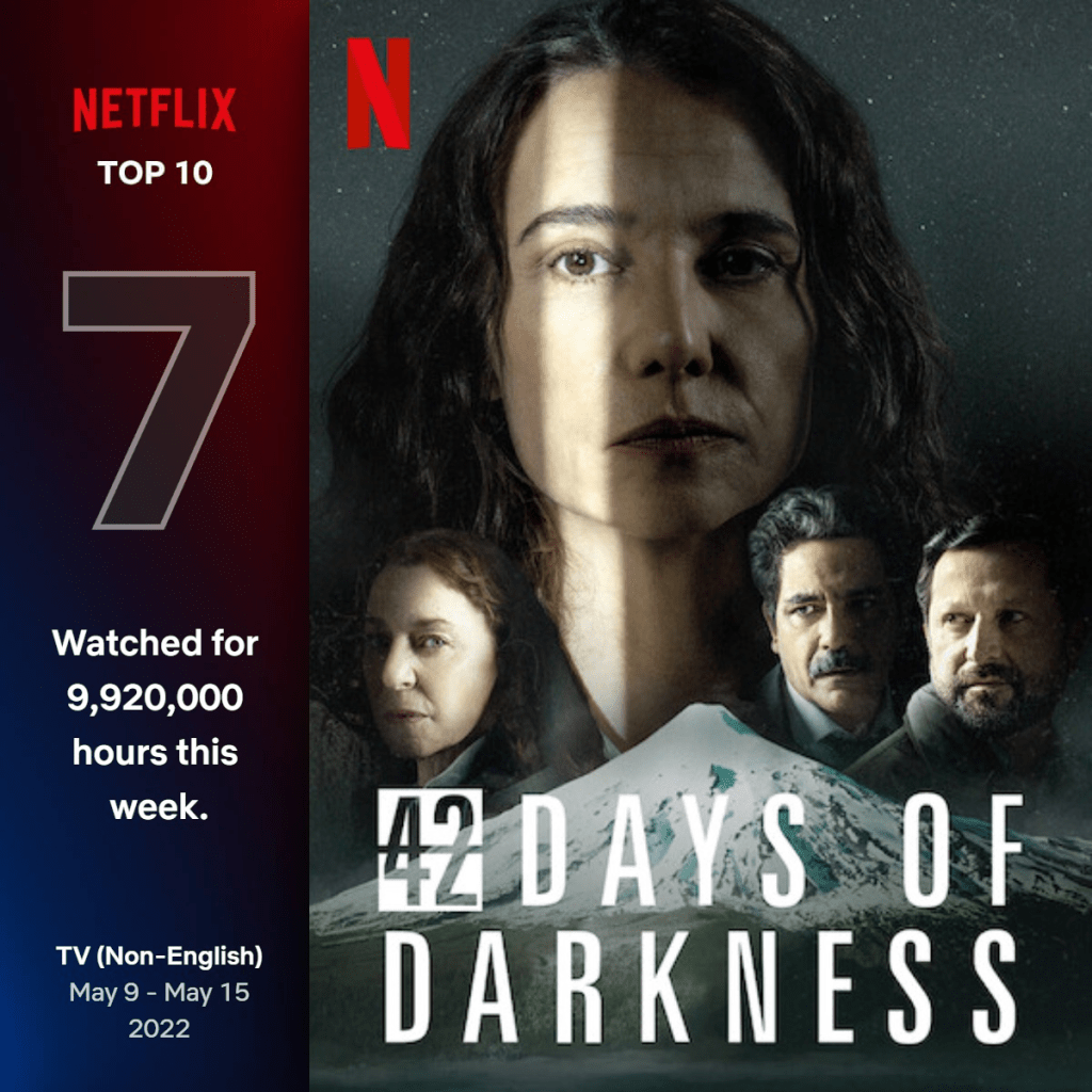 Como todas las semanas, Netflix actualizó el ranking de lo más visto en la plataforma, y 42 días en la oscuridad aparece en el séptimo lugar de las series extranjeras