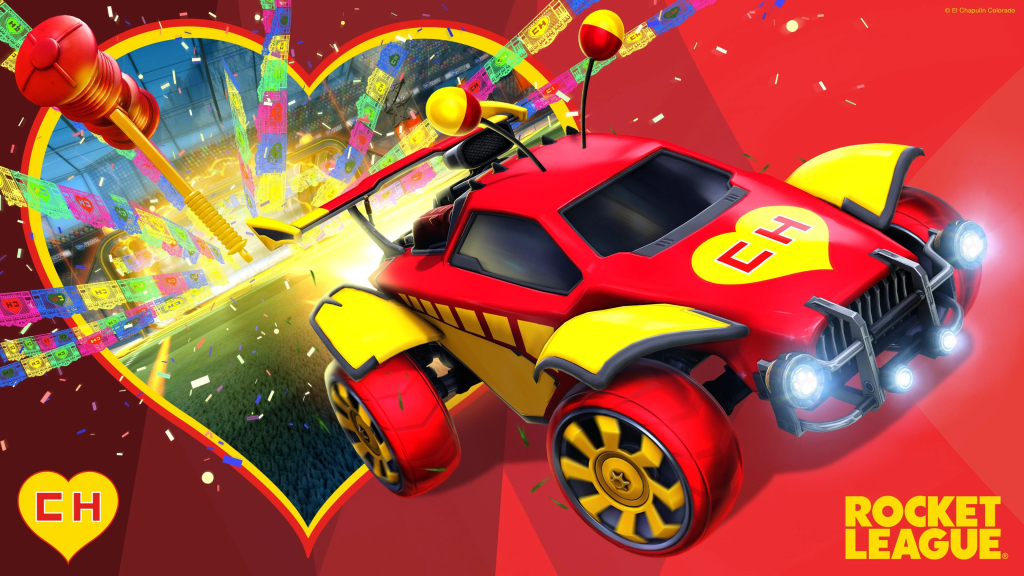 La colaboración entre Rocket League y el Chapulín Colorado incluye la Calcomanía Síganme los Buenos, el Adorno Antenitas de Vinil, las Ruedas Más Rápido que una Tortuga y la Explosión de gol Chipote Chillón. Se pueden conseguir a traves de un lote, a 1000 créditos, o por separado.