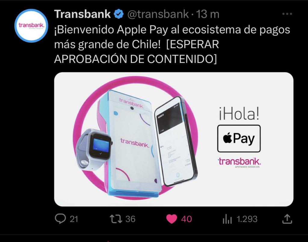 Estos reportes se dan luego que aparentemente desde Transbank realizaran por error una publicación dando la bienvenida a Apple Pay a su ecosistema de pagos, publicación que luego fue eliminada.