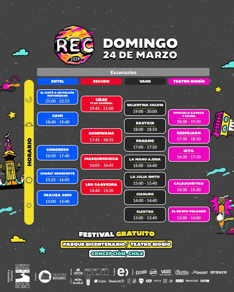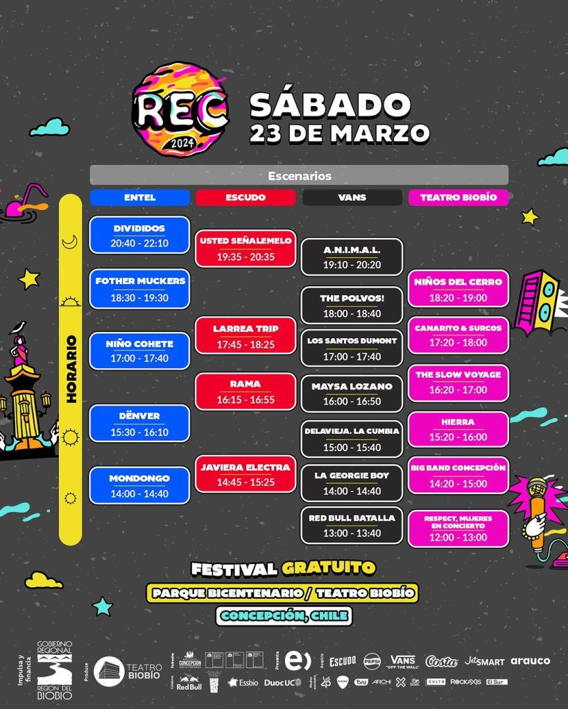 Festival REC 2024 se realizará el 23 y 24 de marzo en el Parque Bicentenario y Teatro Bio-Bio, en Concepción, y como todos los años, su entrada es liberada, siendo el festival gratuito más importante del país.
