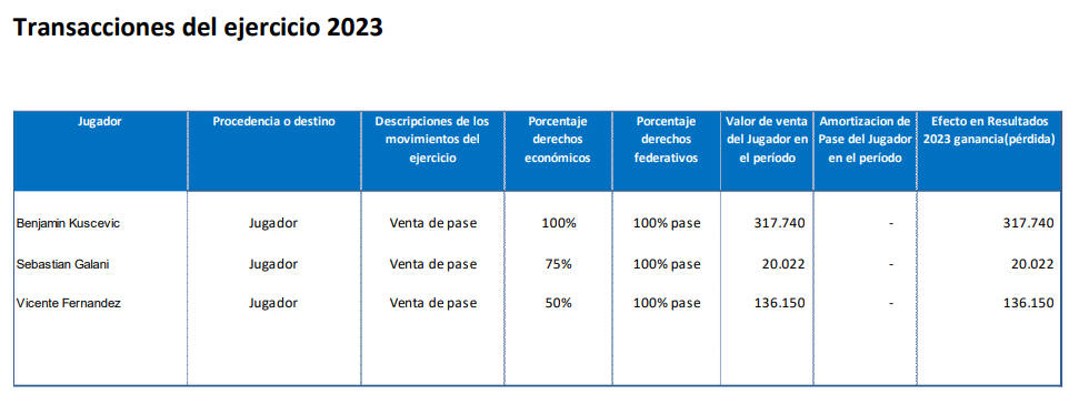 Este 2023, no se registra este punto en la Memoria Anual de Cruzados, pero si la podemos obtener de los Estados Financieros del club, en donde el año pasado el ingreso que más recibió por concepto de ventas de jugadores fue gracias a Benjamín Kuscevic.