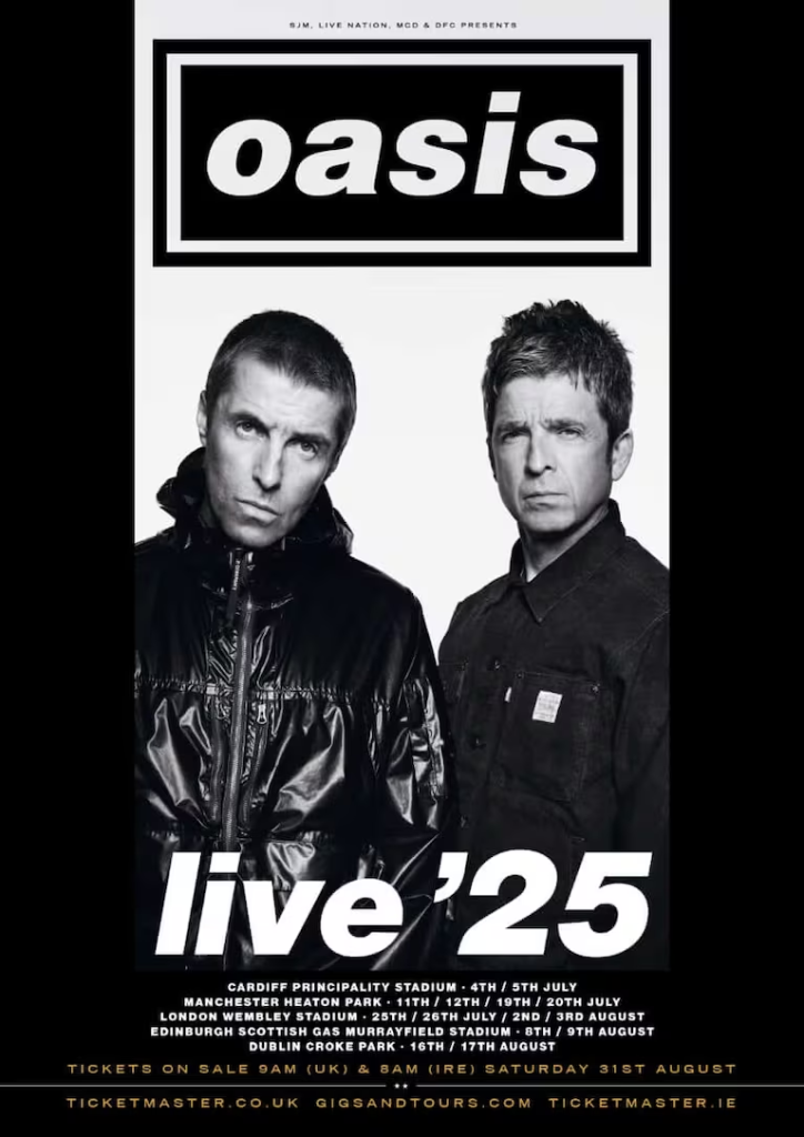 Oasis anunció su regreso a los escenarios con una gira para el próximo año, con presentaciones en Reino Unido e Irlanda, aunque aún quedan fechas por ser reveladas.