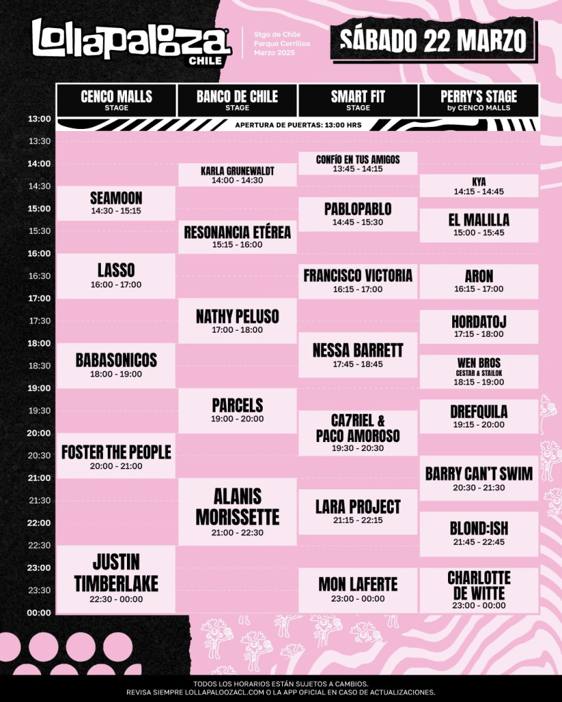 Se publicaron los horarios de Lollapalooza Chile 2025, dando a conocer el cronograma y escenarios en la próxima edición del festival.