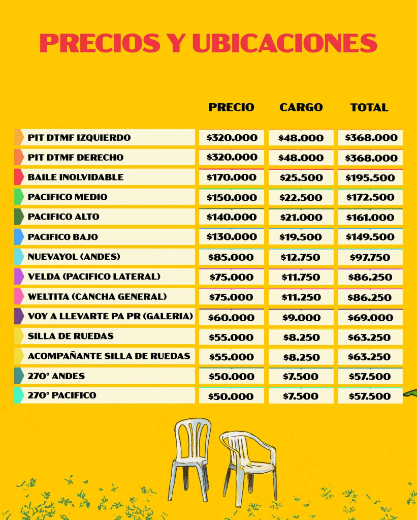 El valor de las entradas va desde $57.500 hasta $368.000. La venta de entradas comenzará el 12 de mayo, a través del sistema PuntoTicket, con una preventa exclusiva para clientes BancoEstado (pagando con Cuenta Corriente Digital o Tarjetas de crédito), luego una segunda preventa para clientes Movistar, desde el 14 de mayo, y finalmente la venta general inicia el 16 de mayo.