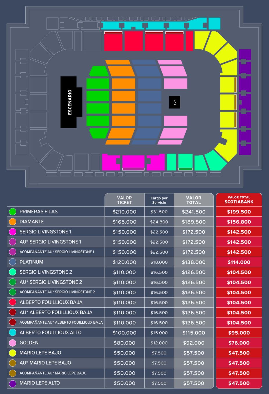 La venta de entradas para el concierto de Toto en Chile inicia este 3 de julio a las 15 horas, a través del sistema PuntoTicket; en primera instancia con una preventa pagando con tarjetas Scotiabank, y el viernes 4 comienza la venta general. El valor de las entradas va desde $57.500 hasta $241.500, donde los clientes Scotiabank podrán acceder a un 20% de descuento.