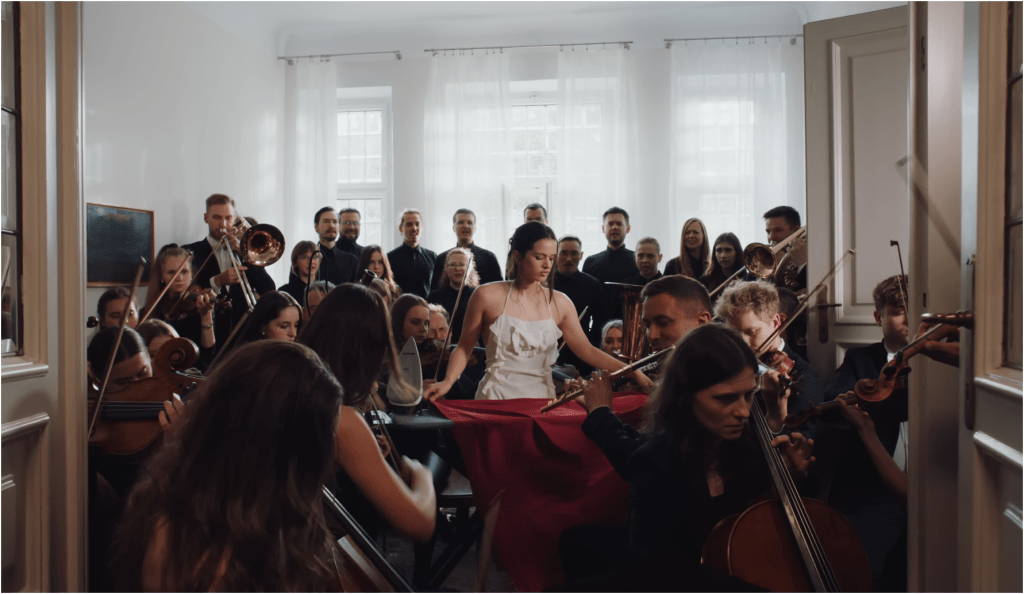 El videoclip de “Berghain”, dirigido por Nicolás Méndez, es un despliegue visual que profundiza en esa propuesta. En él, Rosalía aparece liderando una orquesta en escenarios que mezclan lo litúrgico con lo urbano.