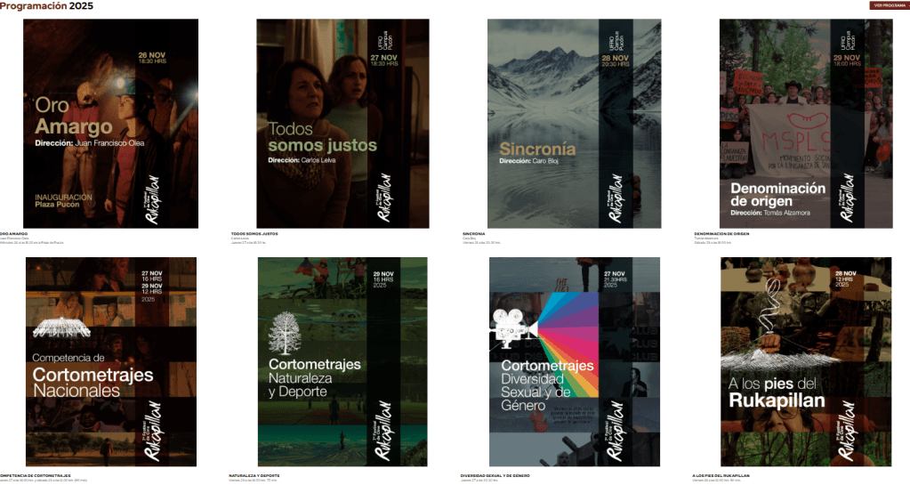 En Pucón, la programación comenzará el miércoles 26 con la inauguración del festival a las 18:30 horas en Plaza Pucón, donde se exhibirá Oro Amargo, de Juan Francisco Olea.