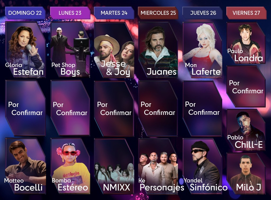 De esta forma, aun faltando los comediantes, la parrilla del Festival de Viña del Mar 2026 queda así: