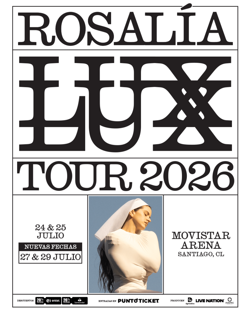 Esta mañana comenzó la venta de entradas para los conciertos de Rosalia en el Movistar Arena el 24 y 25 de julio de 2026, y debido al éxito de venta, DG Medios anunció dos nuevas fechas, para el 27 y 29 de julio.